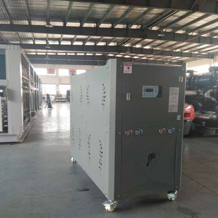 目前工廠使用比較多的便是注塑機,塑膠粒經加熱溶化后注入模具中,凝結后,開模頂出成型塑膠工件,在連續生產過程中有需用對模具進行冷卻,以縮短塑膠凝結時間,提高工件尺寸精度,成型質量、表面質量。而在早期,很多用戶選用冷卻水塔為其降溫,這種冷卻方式只適合在環境溫度較低的情況下達到降溫目的,一旦環境溫度升高,則無法保證產品精度。因此,就需要使用到制冷機組
