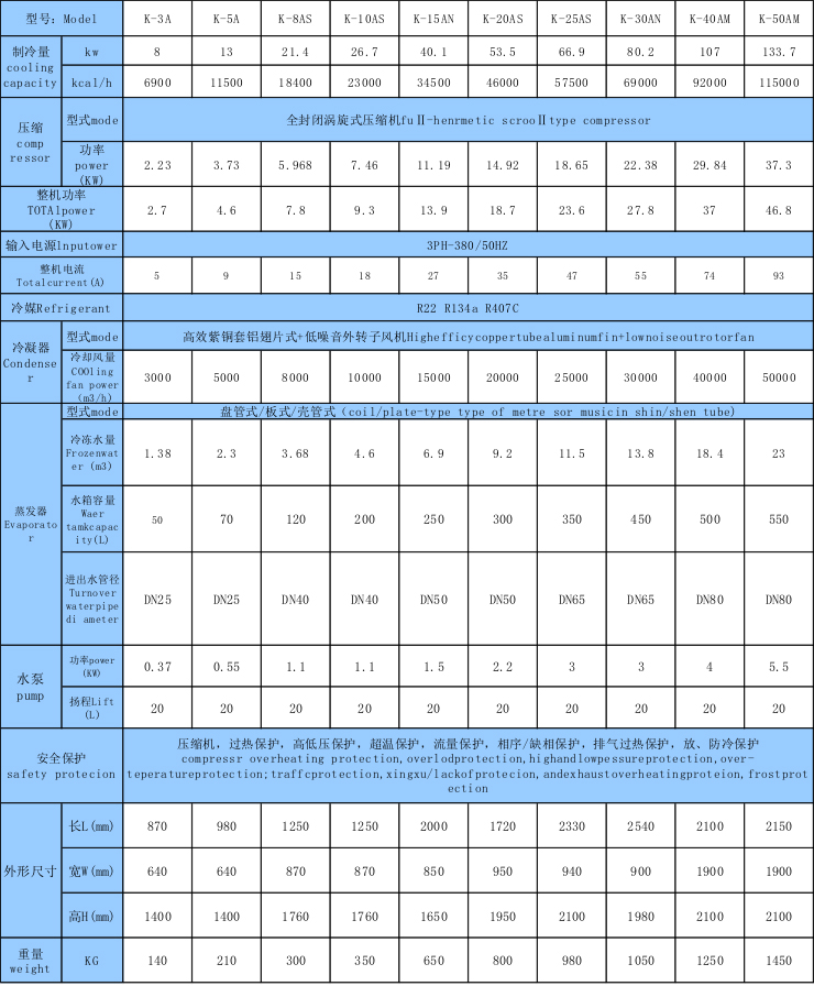 二.模具專用風(fēng)冷式冷水機(jī)技術(shù)參數(shù)